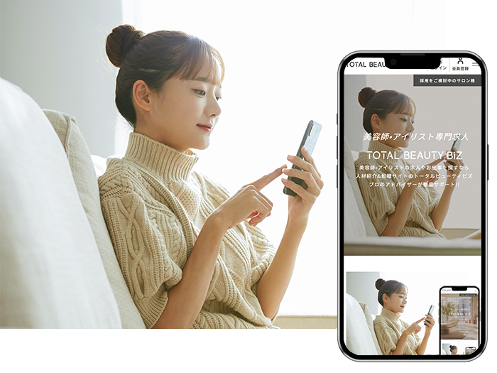 トータルビューティビズは、美容師・アイリスト・ネイリストの求人に特化した人材紹介、転職サポートサービスをおこなっています。
